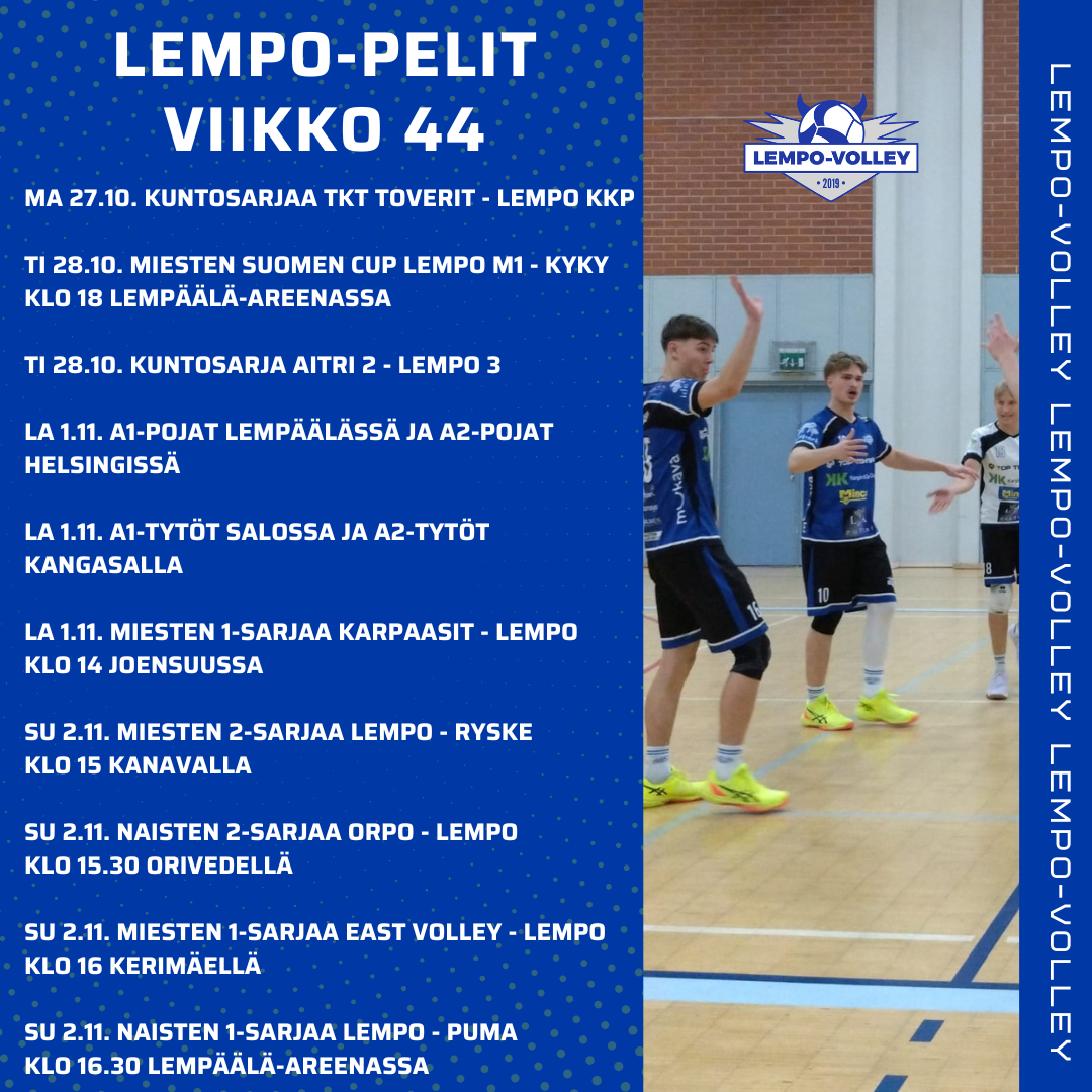 Lempo-Volley Lempäälä on vuonna 2019 perustettu lentopallon ja beach volleyn erikoisseura. Seuramme tarjoaa laadukasta toimintaa lajia aloittelevista aina suomalaiselle huipputasolle asti, kuntoilusta aktiiviseen harrastustoimintaan.