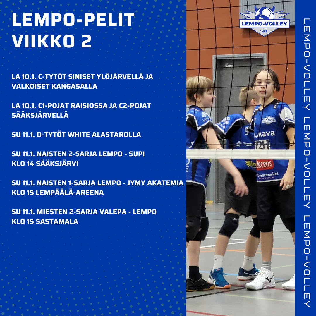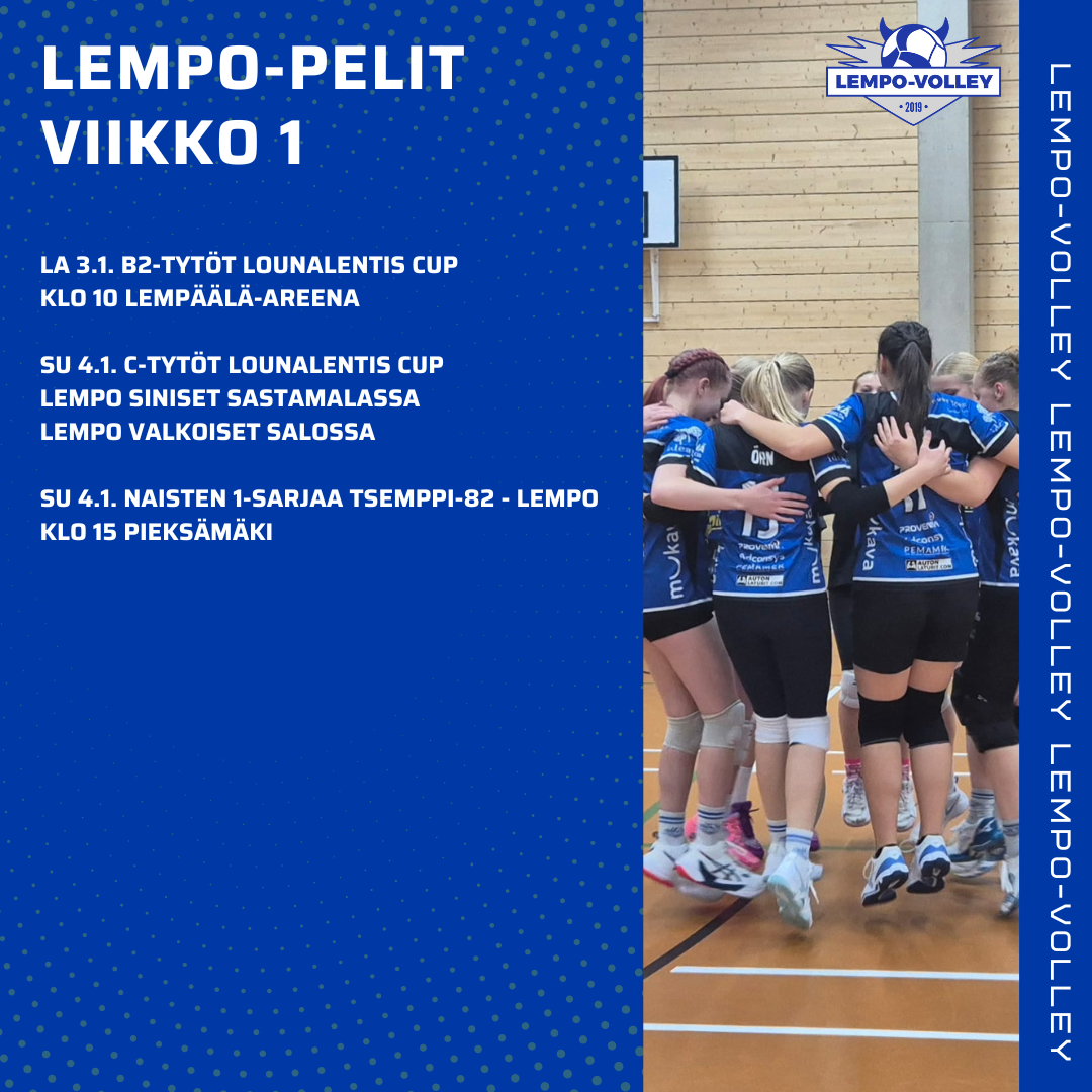 Lempo-Volleyn vuoden 2026 ensimmäinen peliviikko sisältää B- ja C-tyttöjen Lounalentis Cupin karsintaturnaukset ja naisten 1-sarja palaa joulutauolta. Lauantaina 3. tammikuuta B2-tytöt pelaavat…