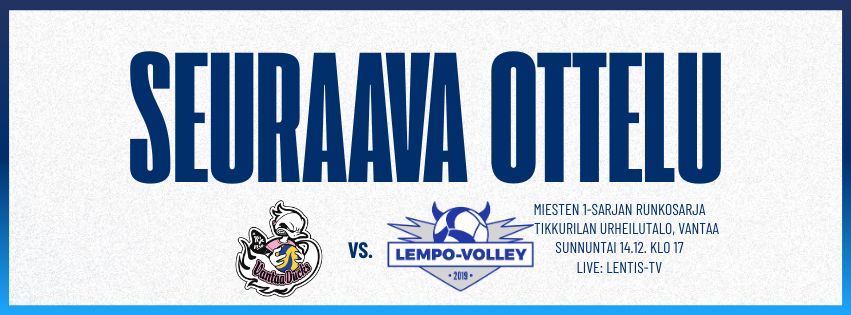 MITÄ: Runkosarjaa Lempo-Volley–Ducks ja Kuortane–Lempo-Volley MISSÄ: Lempäälä-areena ja Kuortaneen lentopalloareena MILLOIN: La 6.12. klo 15 ja su 7.12. klo 16 LIPUT: La 6.12. 10/7€, alle 16v…