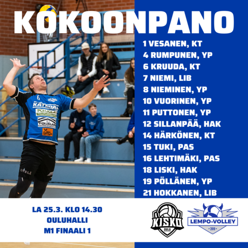 Lempo-Volley aloitti miesten 1-sarjan finaalisarjan komealla tavalla. Lähes täysi Ouluhalli ja 759 katsojaa rakensivat finaalin arvoisen tunnelman ja Lempo ja Kisko antoivat kentällä yleisölle ihasteltavaa todella jännittävässä kamppailussa.