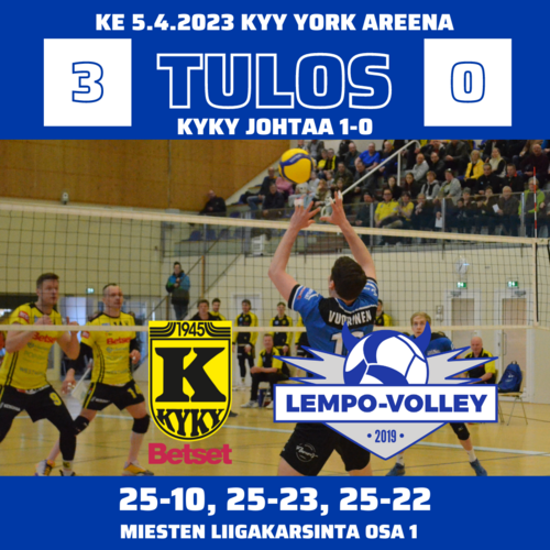 1. LIIGAKARSINTA: KYKY-BETSET – LEMPO-VOLLEY 3–0 (25–10, 25–23, 25–22)