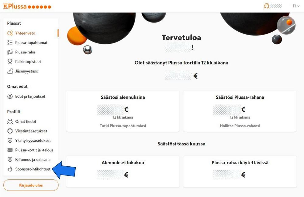 Valitse vasemman laidan valikosta Sponsorointikohteet