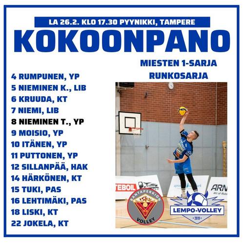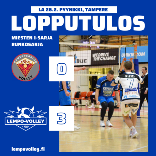 M1 RUNKOSARJA: RANTAPERKIÖN ISKU – LEMPO-VOLLEY 0–3 (16–25, 18–25, 22–25)