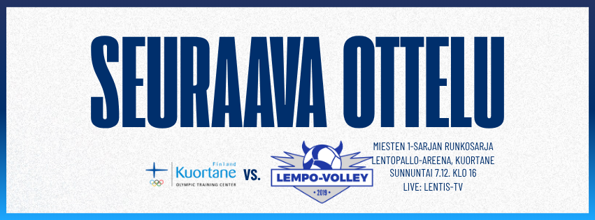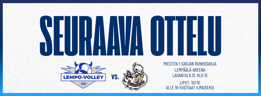Lempo-Volleyn miesten 1-sarjakausi jatkuu kahdella huippupelillä 6–7. joulukuuta. Lauantaina itsenäisyyspäivänä 6.12. Lempo kohtaa kotikentällään Lempäälä-areenassa Vantaa Ducksin kello 15. Sunnuntaina 7.12. Lempo matkustaa Kuortaneen vieraaksi Kuortaneen urheiluopistolle, peli alkaa kello 16.
