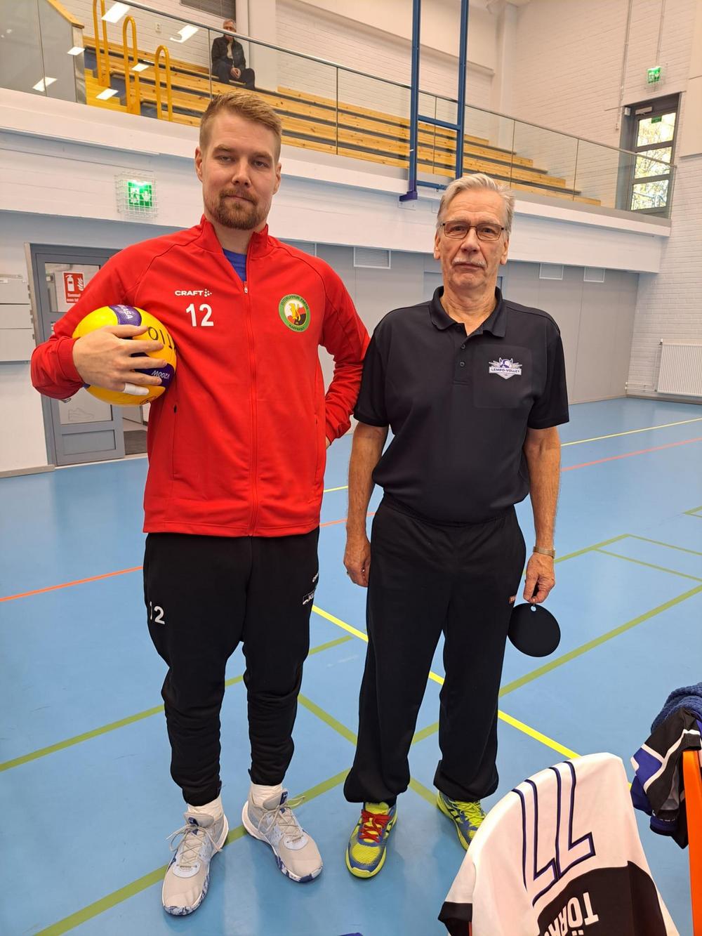 Ennen peliä nähtiin hieno jälleennäkeminen: Lempon huoltaja Jorma Lötjönen kertoi valmentaneensa Karpaasien Ville Louhelaa Lempäälän Jyryssä oman muistinsa mukaan D- tai C-junioreissa. Kaksikko vaihtoi kuulumiset ennen lämmittelyä.