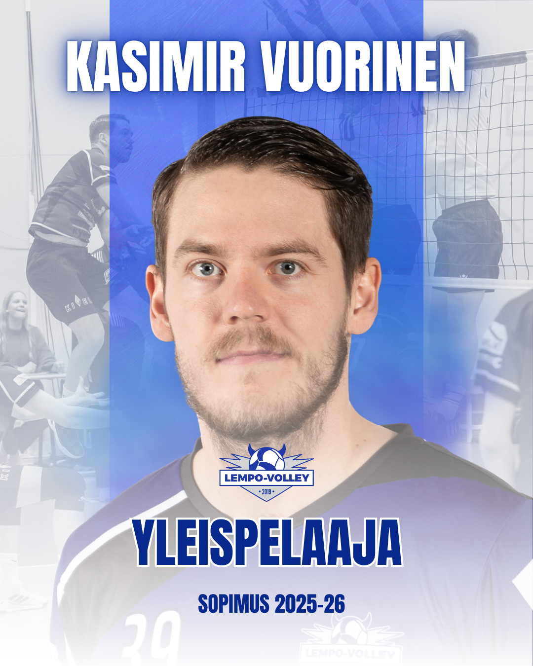 Yleispelaaja Kasimir Vuorinen jatkaa Lempo-Volleyn miesten 1-sarjajoukkueessa kauden 2025–26 mittaisella sopimuksella. 29-vuotiaalle Vuoriselle alkava kausi Lempossa on kolmas ja toinen peräkkäinen.