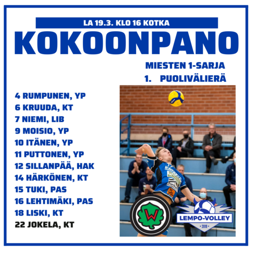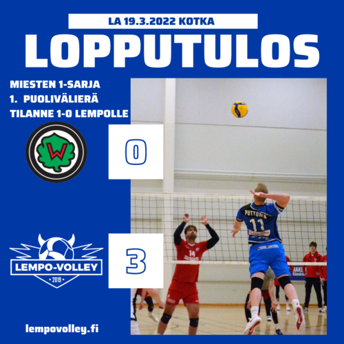 Lempo-Volley avasi miesten 1-sarjan puolivälierät Kotkassa selvällä voitolla. Lempo otti avauskiinnityksen välieräpaikkaan voittamalla Karhulan Veikot 3–0 (25–18, 25–15, 25–19).