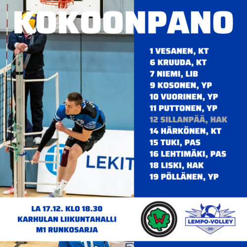 Lempo-Volley siirtyy miesten 1-sarjassa joulutauolle hienon vierasvoiton saattelemana. Vuoden viimeinen peli pelattiin Kotkassa Karhulan Veikkoja vastaan.