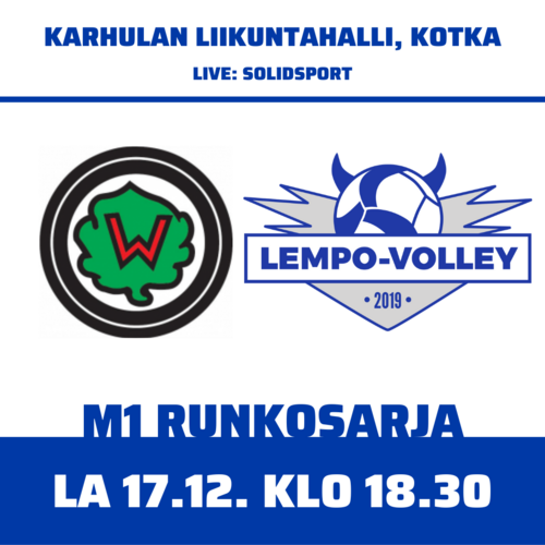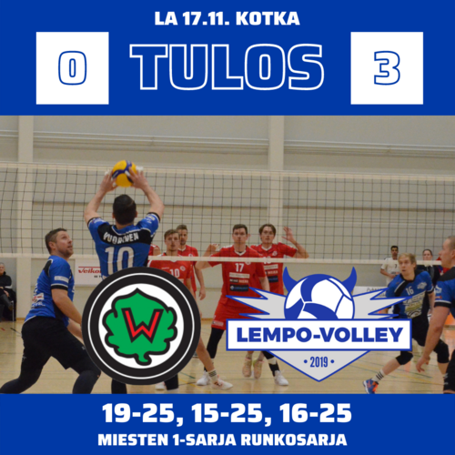 M1 RUNKOSARJA: KARHULAN VEIKOT – LEMPO-VOLLEY 0–3 (19–25, 15–25, 16–25)