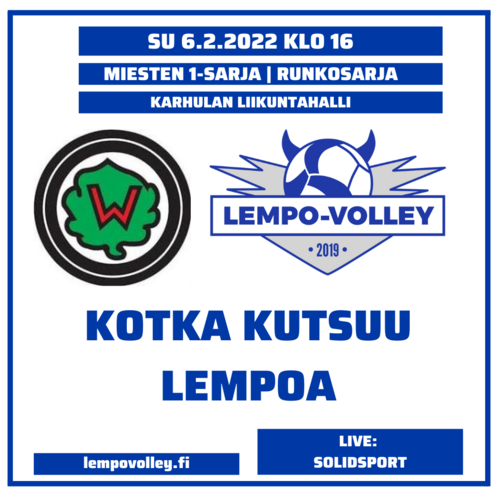 Lempo hävisi jo kolmannen kerran putkeen pelissä avauserän, mutta nousi lopulta voittajaksi. KaVea vastaan lukemat olivat 3–1 (22–25, 25–8, 25–19, 25–23). Voitto oli kahdeksas putkeen ja pitää lempääläiset sarjan kärkipaikalla.