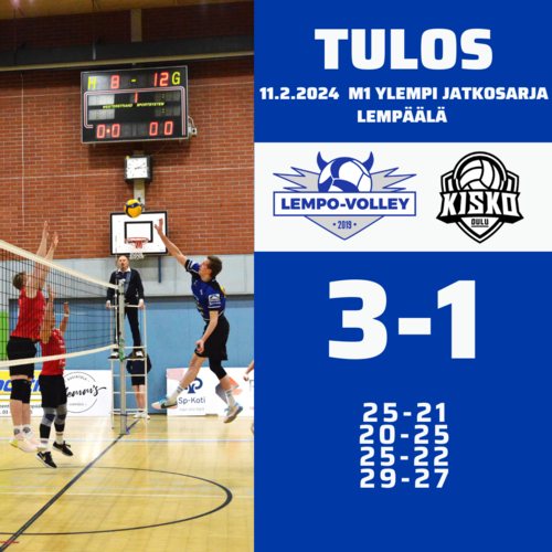 M1 YLEMPI JATKOSARJA LEMPO-VOLLEY – OULUN KISKO 3–1 (25–21, 20–25, 25–22, 29–27)