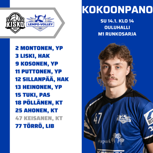 M1 RUNKOSARJA OULUN KISKO – LEMPO-VOLLEY 3–0 (25–23, 25–16, 25–21)