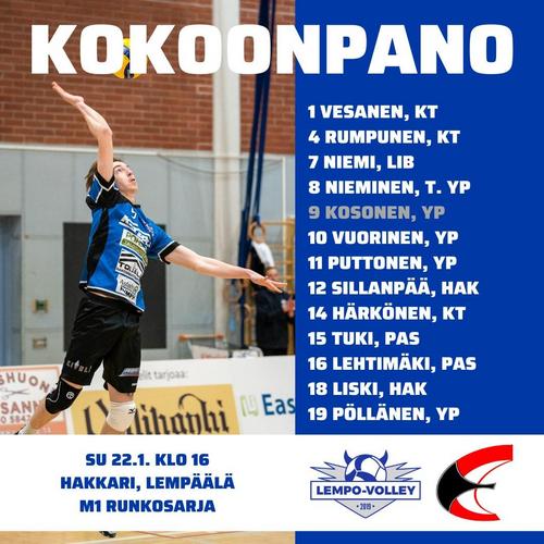 Lempon valmennus kierrätti pelaajapakkaansa runsaasti. Kokkolan Tiikereistä lainaltaan palannut yleispelaaja Kasimir Vuorinen oli takaisin kokoonpanossa, mutta hän sai vielä huiliuvuoron ja oli toisena liberona.