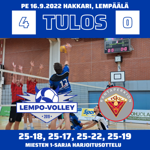M1 HARJOITUSOTTELU: LEMPO-VOLLEY – RANTAPERKIÖN ISKU 4-0 (25-18, 25-17, 25-22, 25-19)