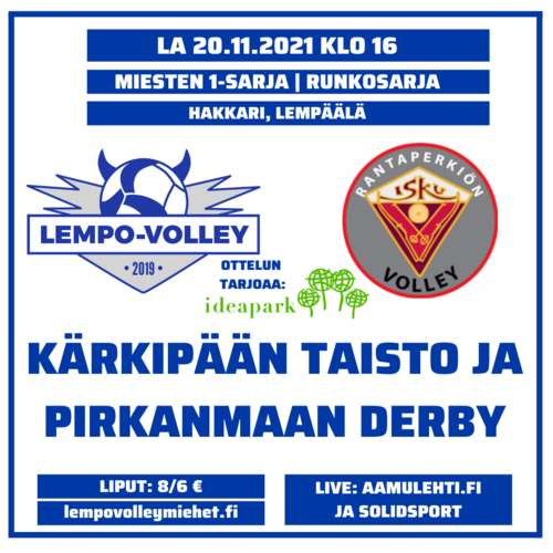 Lempo-Volley haki Hakkarin lauantai-illasta maistuvan ja makean kotivoiton ja Pirkanmaan herruuden ainakin hetkeksi, kun Rantaperkiön Isku kaatui erin 3-1 (23-25, 25-22, 25-22, 25-18).