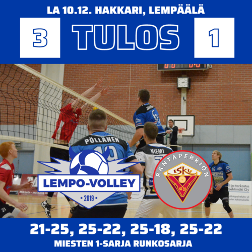 Lempo-Volleyn tiukka kahdeksan päivän ja kolme ottelun putki saatiin päätökseen lauantaina 10. joulukuuta paikallispelillä Rantaperkiön Iskua vastaan.