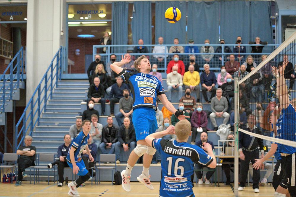 Arttu Moisio pelasi loistavan iltapuhteen ja suoritti joka osa-alueella vahvasti. Myös Jani Liski oli torjunta- ja syöttöpelissä vakuuttavassa vireessä. Helmenä toisen erän kaksi peräkkäistä komeaa torjuntaa. Rolle Jokela kävi kakkoserässä tekemässä kaksi pistettä hakkurina tuplavaihdosta ja tuli kolmoserään keskitorjujaksi.
