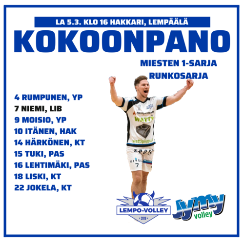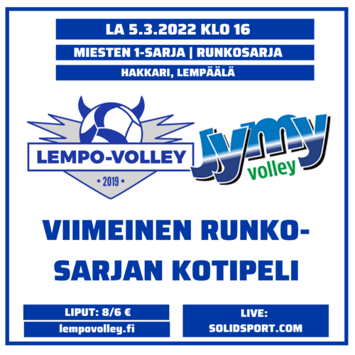 Lempon runkosarja päättyy 13.3. East Volleyn vieraana Savonlinnassa. Jymy pelaa 6.3. Sampoa vastaan kotisalissaan.