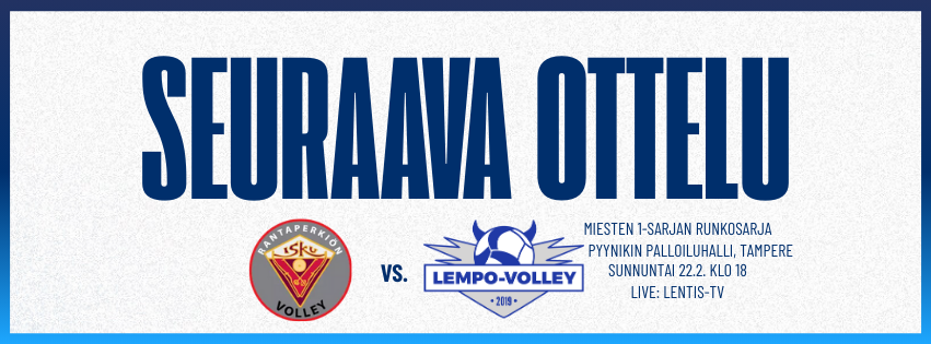 Lempo-Volleyn miesten 1-sarjakausi jatkuu sunnuntaina 22. helmikuuta Pirkanmaan paikallispelin merkeissä. Lempo matkustaa vieraspeliin Pyynikin legendaariseen palloiluhalliin ja kohtaa Rantaperkiön Iskun. Ottelu alkaa kello 18.