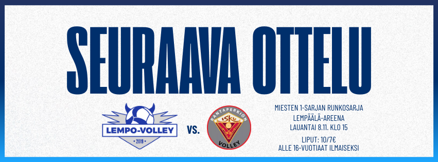 Lempo-Volley jatkaa miesten 1-sarjakauttaan lauantaina 8. marraskuuta, kun Lempo kohtaa kotikentällään Lempäälä-areenassa tamperelaisen Rantaperkiön Iskun. Pirkanmaan paikallispeli alkaa tutusti kello 15.