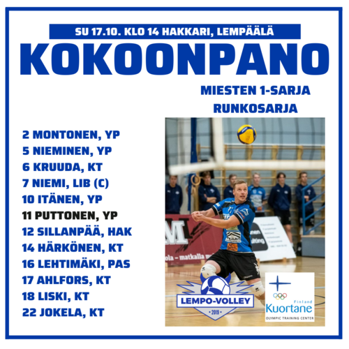 Lempo kohtaa ensi lauantaina 23.10. Pielaveden Sammon kotihallissaan ja ex-Lempo Kasper Pennanen palaa todennäköisesti Hakkariin Sampo-paidassa. Murikoilla on taukoa ja 6.-7. marraskuuta vieraspelit East Volleyta ja Sampoa vastaan.