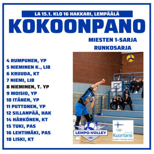 Murikat: Leevi Väänänen, Nooa Marttila, Miika Haapaniemi, Willian Groffier, Jiri Leinonen, Petteri Tyynismaa ja libero Joonatan Salpakari