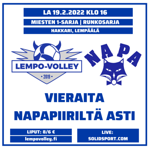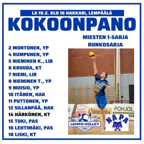 Lempo jatkaa pelejään ensi lauantaina 26. helmikuuta kärkipelissä Rantaperkiön Iskua vastaan Tampereella. NaPa pelaa jo sunnuntaina 20.2. Pälkäneen vieraana.
