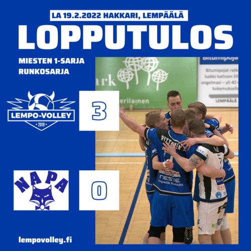 M1 RUNKOSARJA: LEMPO-VOLLEY – NAPAPIIRIN PALLOKETUT 3-0 (25-17, 25-19, 25-7)