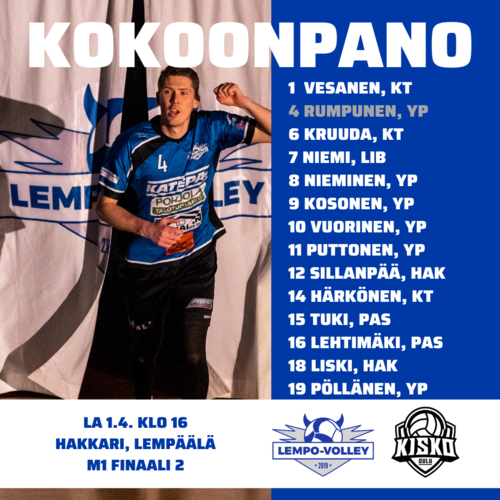 M1 2. FINAALI: LEMPO-VOLLEY – OULUN KISKO 3–0 (25–23, 25–23, 25–19)