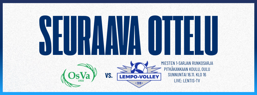 Lempo-Volleyn kausi 1-sarjassa jatkuu vieraskentällä, kun sunnuntaina 16. marraskuuta on edessä kauden pisin vieraspelimatka runkosarjassa. Lempo matkustaa junalla Ouluun ja kohtaa sarjanousijan Oulunsalon Vasaman. Peli alkaa Pitkäkankaan koulun Kari Seppä -salissa kello 16.