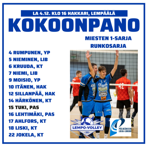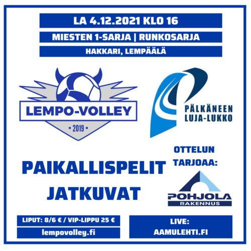 Lempo kohtaa vuoden viimeisessä pelissään 18.12. East Volleyn kotona ja aloittaa vuoden 2022 jo 2.1. Pälkäneen vieraana. Luja-Lukolla on edessä vielä kotipelit Kiskoa ja East Volleyta vastaan tänä vuonna.