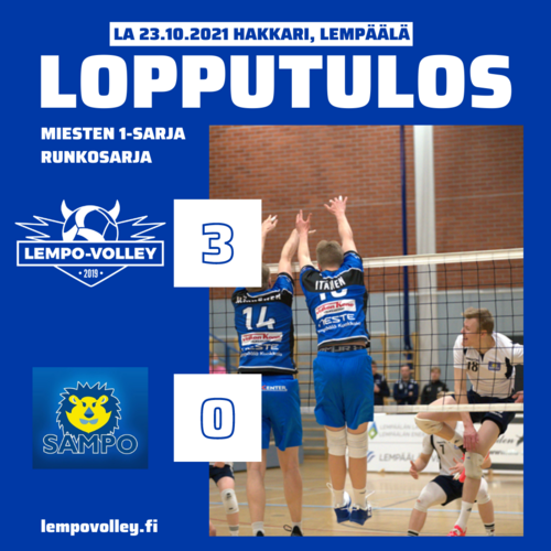 M1 RUNKOSARJA: LEMPO-VOLLEY – SAMPO 3–0 (25-16, 25-22, 25-23)