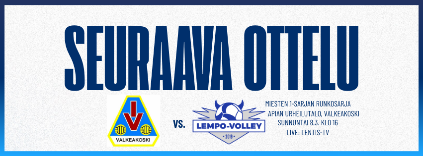 Lempo-Volleyn miesten 1-sarjan runkosarjan toiseksi viimeinen ottelu suuntautuu Valkeakoskelle paikallisvastus Isku-Veikkojen vieraaksi. Ottelu alkaa Apian liikuntahallissa kello 16.