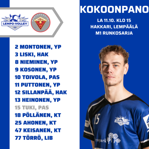 Lempo: Matti Toivola, Tommi Nieminen, Aatu Pöllänen, Tuomas Sillanpää, Daniel Heinonen, Eetu Ahonen ja libero Jami Törrö