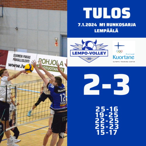 M1 RUNKOSARJA LEMPO-VOLLEY – KUORTANEEN MURIKAT 2–3 (25–16, 19–25, 22–25, 25–23, 15–17)