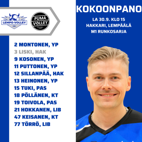 Lempo: Matti Toivola, Simo Puttonen, Aaro Keisanen, Tuomas Sillanpää, Daniel Heinonen, Aatu Pöllänen ja libero Jami Törrö