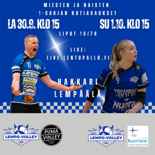 Hallitseva miesten 1-sarjan mestari Lempo-Volley aloitti uuden kauden sarjanousija PuMa-Volleyta vastaan. Avauspeli avasi myös pistetilin, kun Lempo starttaili moottoreitaan 3–0 (25–14, 25–22, 25–17) -voitolla.