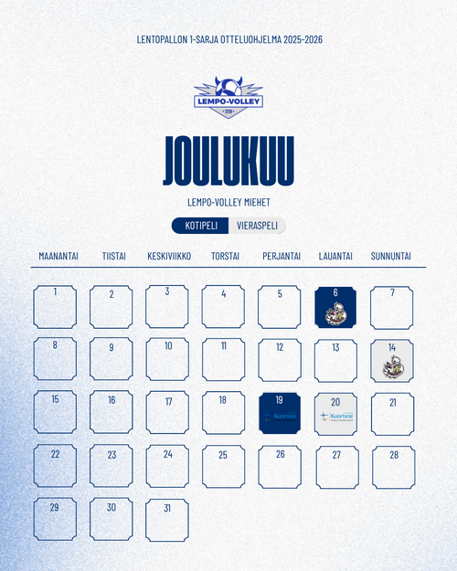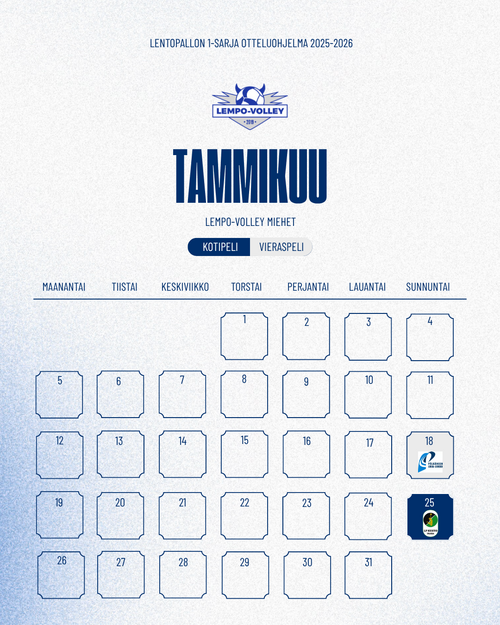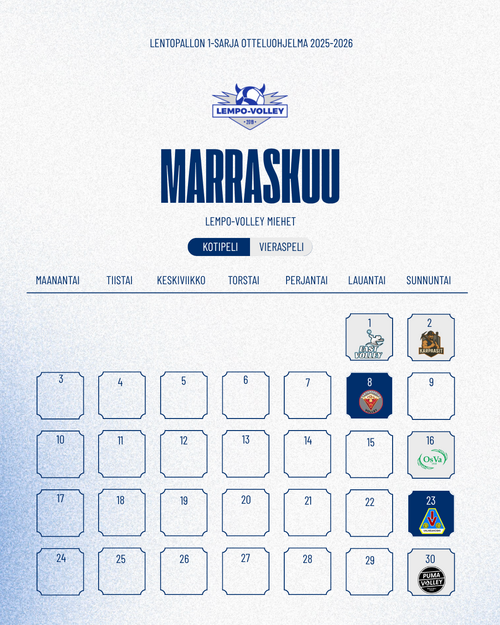 Lempo-Volleyn miesten 1-sarjan kauden 2025–26 runkosarjan otteluohjelma on julkaistu.