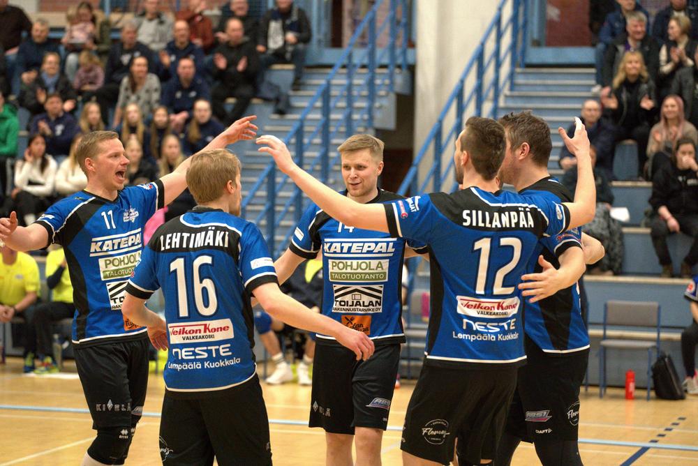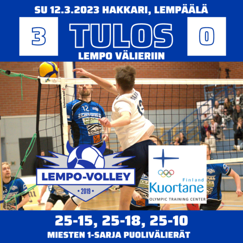 Lempo-Volley eteni vakuuttavasti miesten 1-sarjassa neljän parhaan joukkoon ja välieriin. Puolivälierien toisessa ottelussa sunnuntaina kotikentällä Lempäälässä kaatui Kuortane 3–0 (25–15, 25–18, 25–10). Kun Lempo oli voittanut avauspelin vieraskentällä 3–0, Lempo eteni jatkoon voitoin 2–0.
