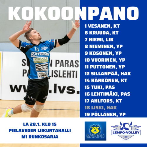 MIESTEN 1-SARJAA: SAMPO – LEMPO-VOLLEY 0–3 (20–25, 16–25, 21–25)