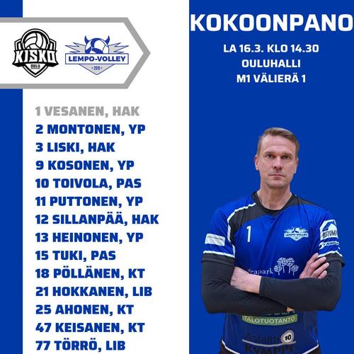 Lempo marsitti avauskokoonpanoon Matti Toivolan, Daniel Heinosen, Aatu Pölläsen, Tuomas Sillanpään, Simo Puttosen, Eetu Ahosen ja liberoksi Jami Törrön. Kisko pääsi parhaillaan, kun Petteri Kiilunen oli taas pelikunnossa. Kokenut kapteeni-libero olikin iso lisä joukkueen peliin edellisen Kisko-kohtaamisen jälkeen.