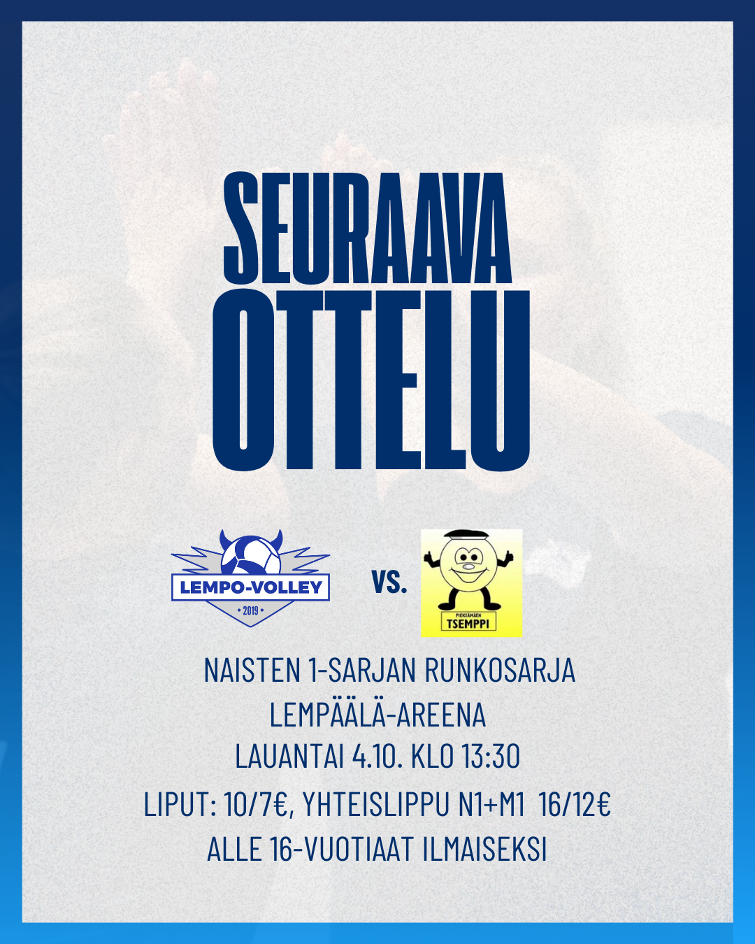 Kausi alkaa pitkän pre seasonin jälkeen, kun lauantaina Lempo-Vollye kohtaa 1-sarjakauden avauspelissä sarjanousija Pieksämäen Tsemppi-82:n Lempäälä-areenassa. Kello 13.30 alkava ottelu aloittaa lentopallon superlauantain, joka jatkuu kello 17 alkavalla miesten 1-sarjapelillä Lempo-Volley–East Volley.