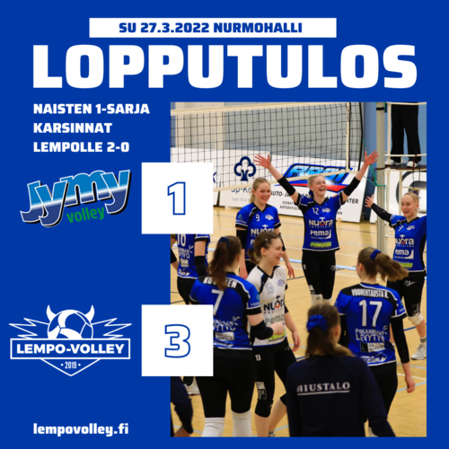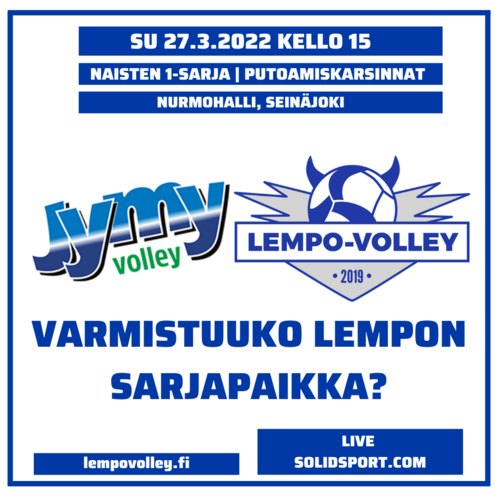 Lempo-Volley lähti päättämään 1-sarjakauttaan sunnuntaina 27. maaliskuuta Nurmoon, jossa pelattiin toinen karsintaottelu. Ja kausihan päättyi, kun Lempo voitti Jymy Akatemian 3–1 (25–21, 13–25, 28–26, 25–21). Samalla Lempo voitti karsintasarjan 2–0 ja varmisti sarjapaikkansa 1-sarjaan kaudelle 2022–2023.