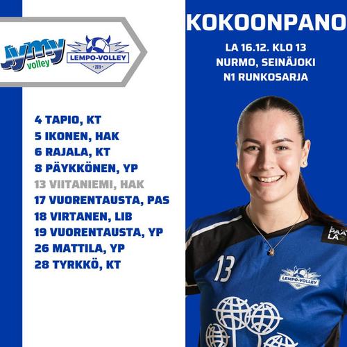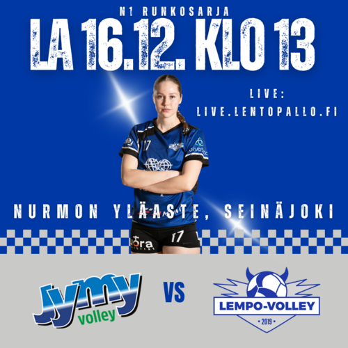 Lempo ja Jymy kohtaavat heti sunnuntaina Lempäälässä Hakkarin liikuntahallissa kello 15. Tervetuloa vuoden viimeiseen otteluun!