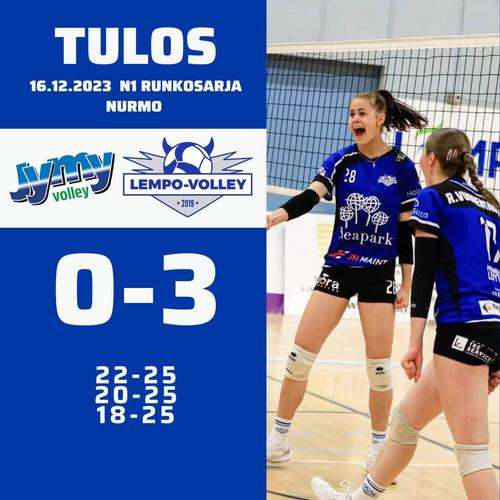 Lempo-Volley aloitti vuoden viimeisen viikonlopun naisten 1-sarjassa vahvalla esityksellä. Lempo voitti Nurmon Jymy Akatemian vieraskentällä 3–0 (25–22, 25–20, 25–18) nousujohteisella esityksellä. Samalla Lempo nousi ainakin hetkeksi sarjakärkeen.