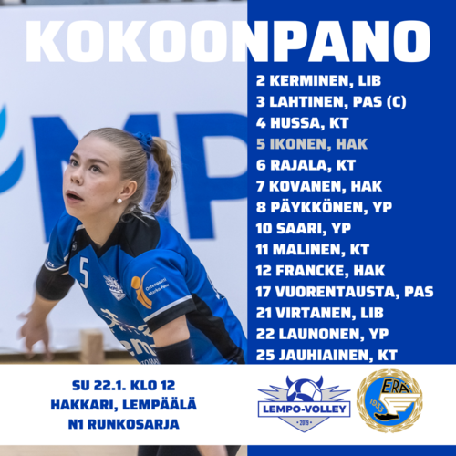 Lempolla oli kokoonpanossa ensi kertaa tällä kaudella hakkuri Sofia Ikonen, joka palasi noin vuoden tauon ja jalkaoperaation jälkeen 1-sarjakentille. Sofia oli hakenut tuntumaa parista 2-sarjatapelistä ja oli upeaa nähdä hänet taas Hakkarin parketilla. Sofia pääsi pari kertaa vaihdosta kentälle. Myös LP Kangasalan farmiapua Mirjam Jauhiainen vahvisti Lempoa.