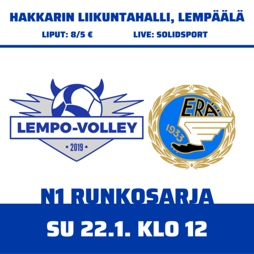 Lempo-Volley ei saanut itsestään parasta irti sunnuntaisessa 1-sarjakamppailussa Tapanilan Erää vastaan. Hakkarissa pelattua kamppailua seurasi Lempon ennätysyleisö 173 katsojaa, mutta valitettavasti Lempo ei pystynyt parhaaseensa. Erä voitti 3–0 (25–23, 25–12, 25–19) ja tasasi kauden voitot keskinäisissä 1–1:een.