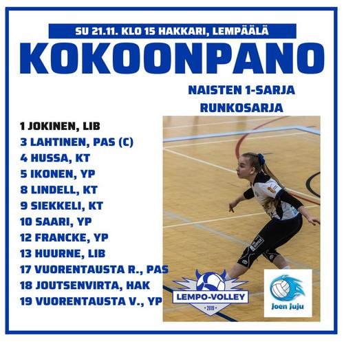 NAISTEN 1-SARJAA LEMPO-VOLLEY - JUJU 3-0 (28-26, 26-24, 25-22)