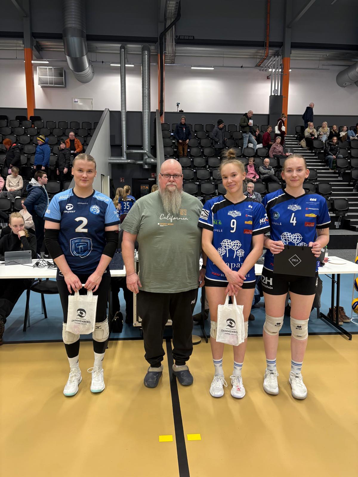 Lempo: Carina Lehto, Adelia Launonen, Erika Kannisto, Laura Yläjärvi, Tiia Virta, Lotta Alatalo ja libero Laura Liikanen