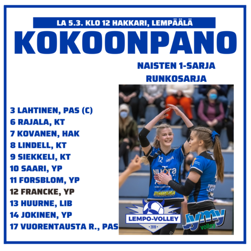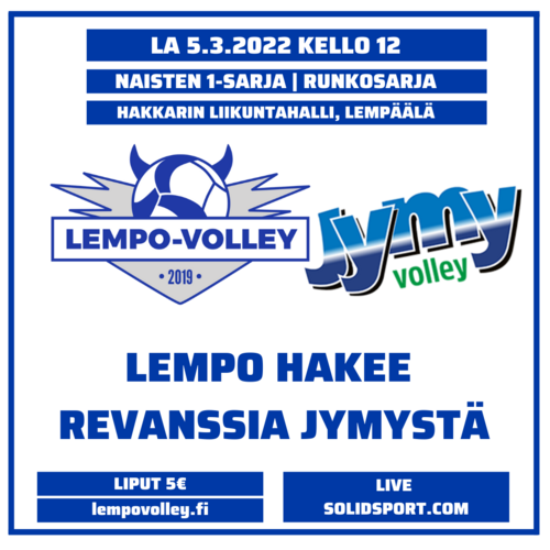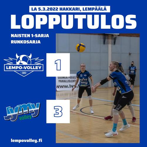 Lempo-Volleyn kotitupla Hakkarin liikuntahallissa alkoi haastavista lähtökohdista lauantaina 5. maaliskuuta. Lempo kohtasi Nurmon Jymy Akatemian, joka haki Lempäälästä täyden pistepotin erin 3–1 (22–25, 25–21, 25–18, 25–21).